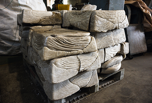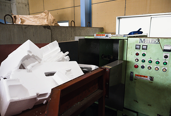 廃プラスチック使用済の発泡スチロールを熱処理し、インゴットにする設備を備えています。