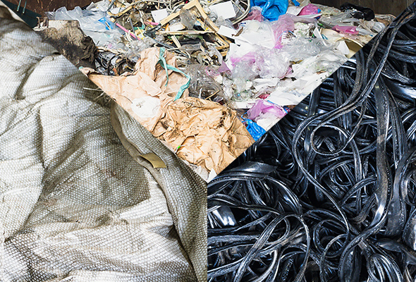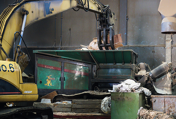 紙くず・繊維くず・ゴムくず選別、破砕処理などの中間処理を行なっています。