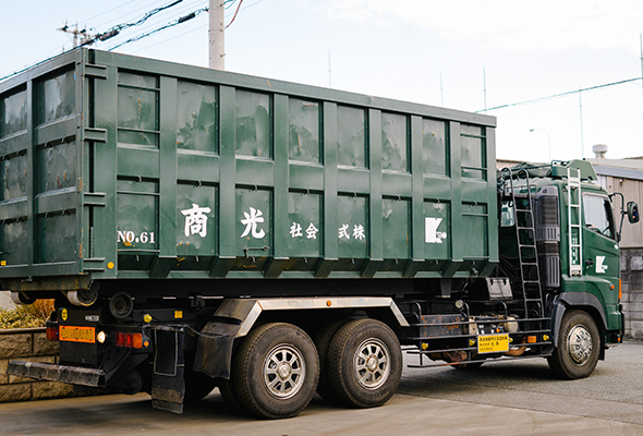 光商では、処理において重要な部分である収集・運搬、そして産業廃棄物の種類に応じた中間処理と、再生処理もしくは最終処分を行なっています。