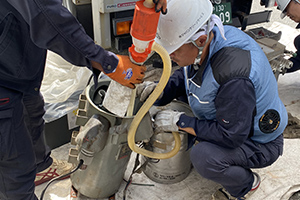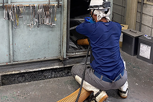 メンテナンス部門では、タンク洗浄や水路清掃、塗装ブース洗浄、PCB油回収、機械撤去など、経験豊かな社員が施工にあたります。